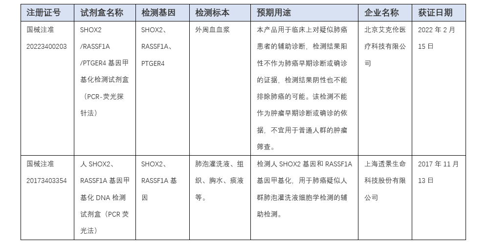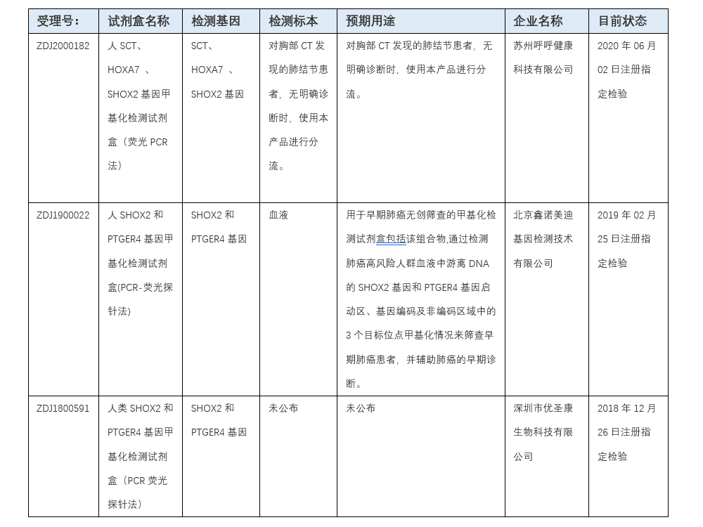 超级详细, 已获CFDA批准及在申请的肺癌甲基化体外诊断试剂盒汇总!