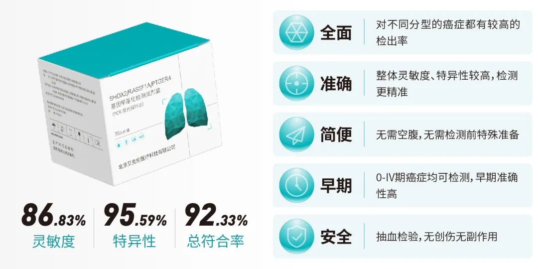 SHOX2/RASSF1A/PTGER4基因甲基化检测试剂盒艾菲明®是艾克伦独家专利产品,获国家药品监督管理局(NMPA)III类医疗器械注册认证,是全球首款肺癌血液三基因甲基化检测产品。仅需抽取5mL外周血,通过高效富集扩增技术捕捉和放大血液中微量的循环肿瘤DNA(ctDNA),检测结果精准可靠,弥补了传统检测技术应用的不足,为早期癌症筛查带来了新的突破。
