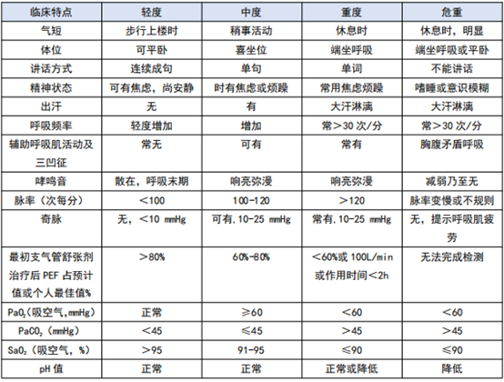 突然出现咳嗽、喘息、气促、心率加快、胸闷症状加重、喘憋频率增加、端坐呼吸,发绀、讲话断续、大汗淋漓、嗜睡或意识障碍等,无论是一个还是多个,往往提示哮喘急性发作。